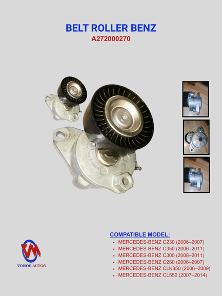 FAN BELT ADJUSTER Mercedes-Benz A272000270:Constructed from premium-grade materials, this belt roller pulley offers exceptional durability, heat resistance, and a long service life. Whether you’re replacing a worn-out pulley or doing preventive maintenance, this part ensures your engine’s accessory systems function quietly and efficiently.
